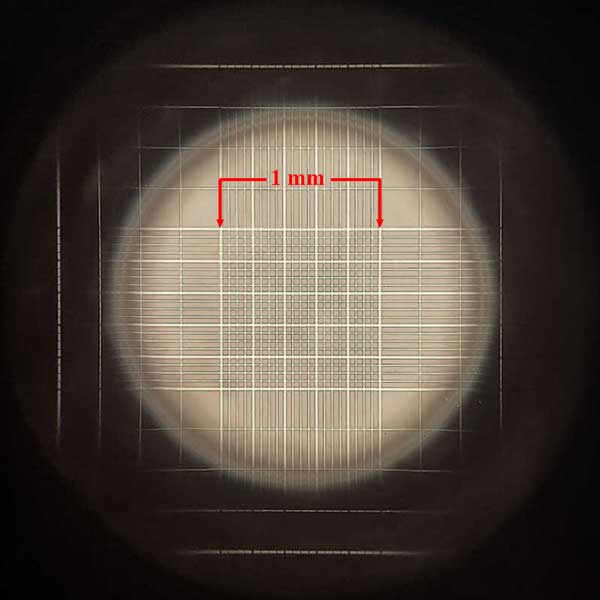 The gridded area consists of an etched area covering 1 mm square. All of the 25 larger squares are the squares which are counted,